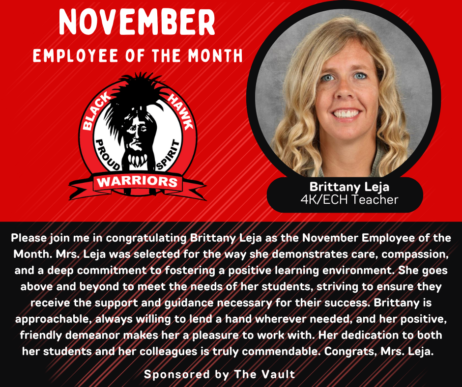 Congratulations, Mrs. Leja! Black Hawk is lucky to have you!!