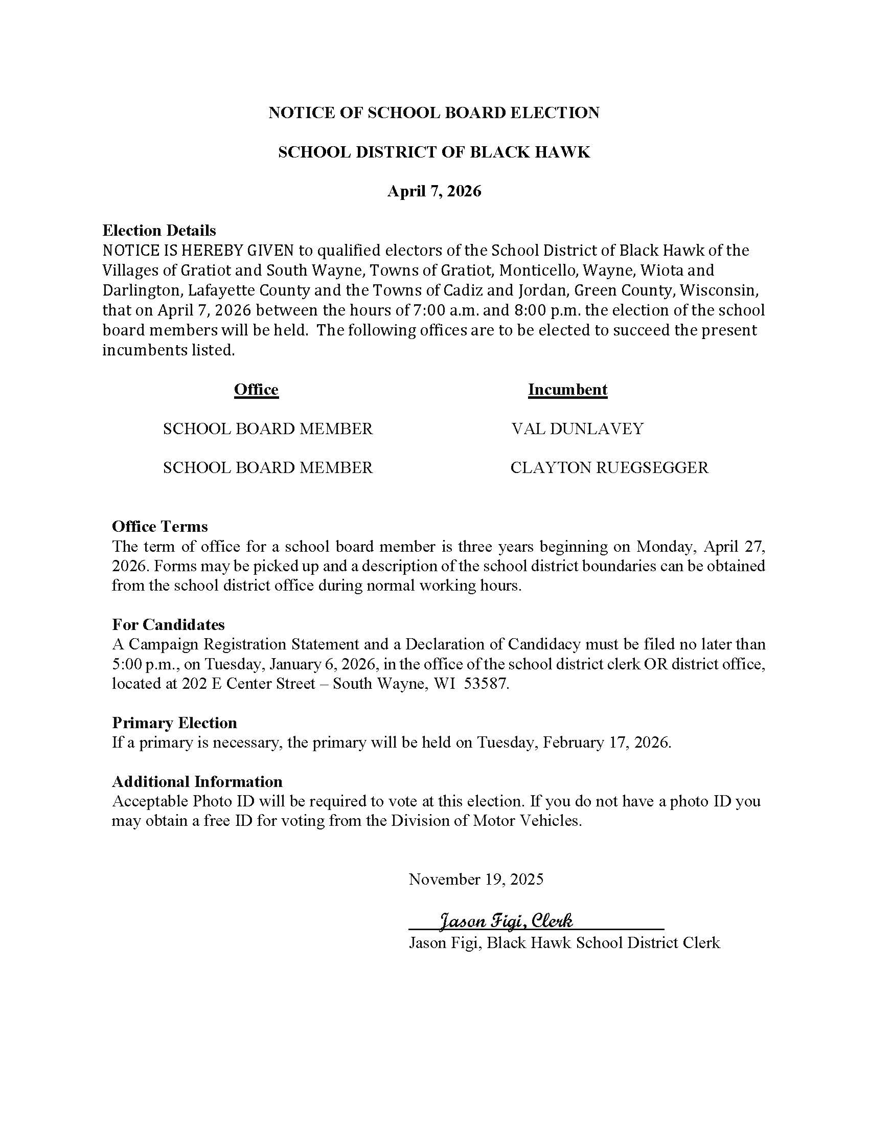 If you have questions, please contact Willy Chambers, District Administrator, at 608.439.5371 or chawil@blackhawk.k12.wi.us